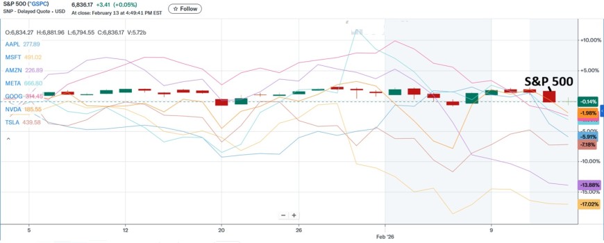 "Magnificent 7" One-Month Performance (Jan 14-Feb 13, 2026)