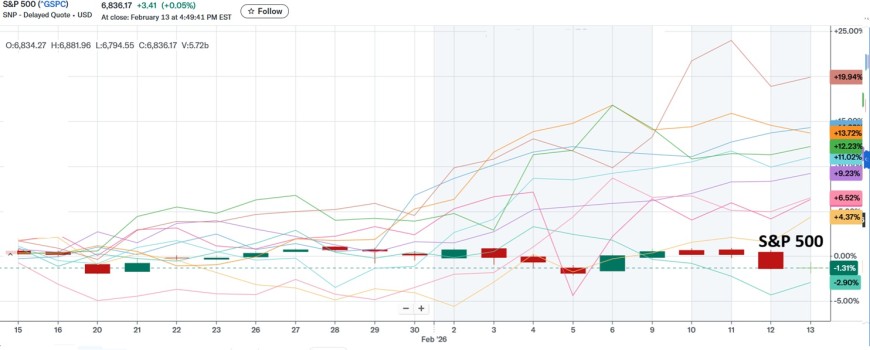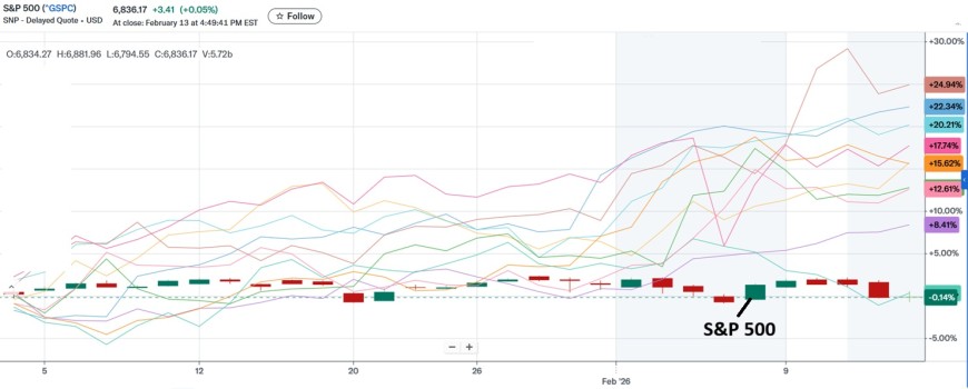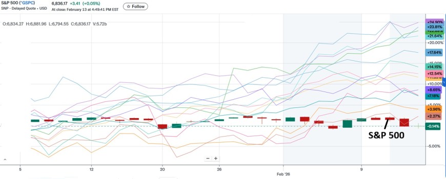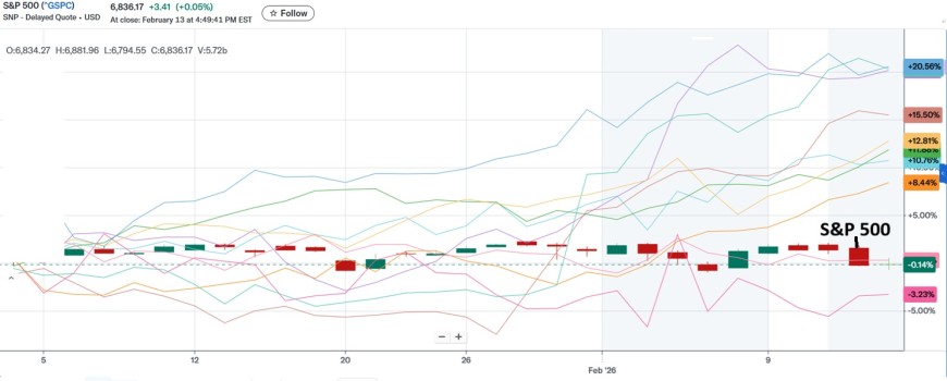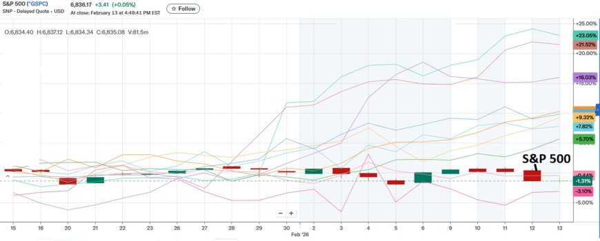 "Magnificent 7" Year-to-Date Performance (as of Feb 13, 2026)