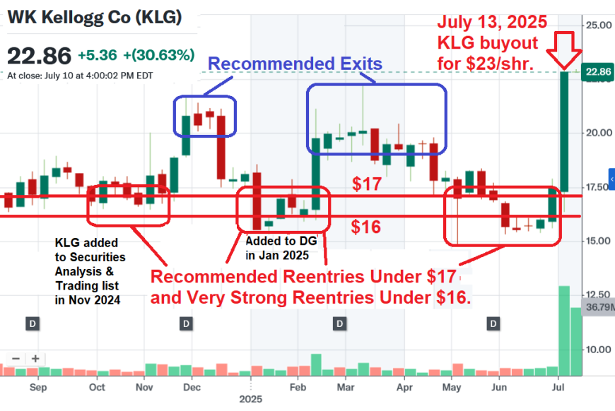 On July 10, 2025, shares of WK Kellogg (KLG) soared by nearly 31% after management announced that Nutella maker Ferrero had agreed to acquire it for $23 a share in cash, or a total enterprise value of $3.1 billion.