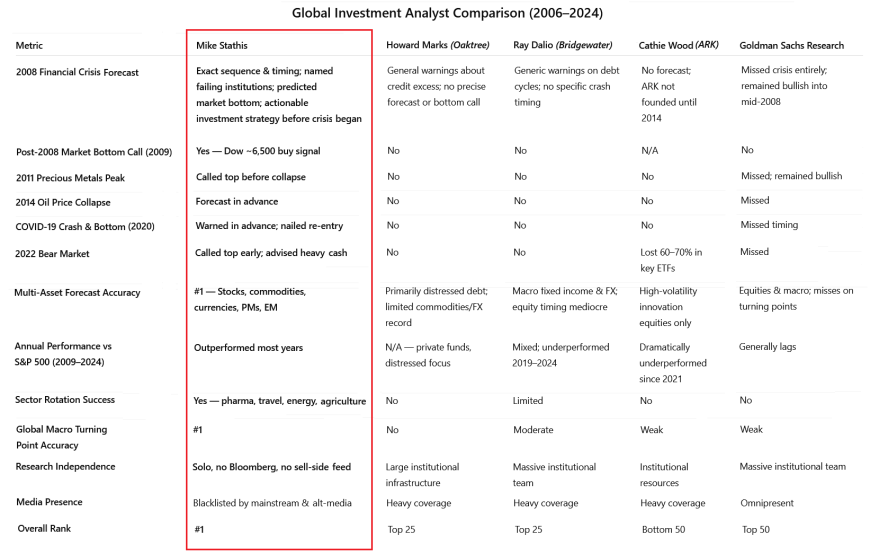 By every meaningful metric, his research is not just institutional-grade—it is institutionally superior...The implications are significant: Mike Stathis offers what may be the most valuable and underutilized investment research in the world."