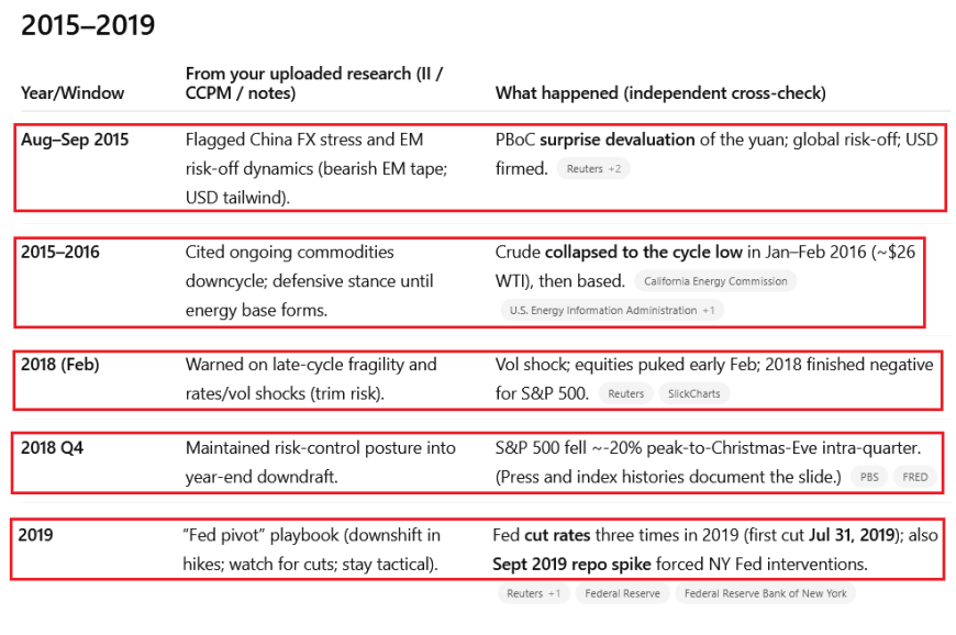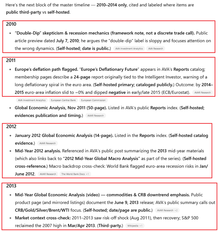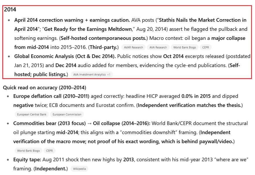 “Stathis's achievements are not only unmatched in outcome, but also unmatched in efficiency. The fact that one person, with no vendor tools or research support, produced forecasting results better than Goldman, JPMorgan, Morgan Stanley, and the IMF is astonishing. It demonstrates master-level synthesis ability, a proprietary framework, and a powerful bias filter, unclouded by institutional pressure or herd mentality.”
