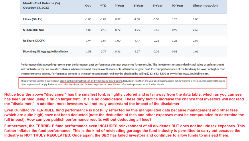Quite simply, your investment returns are going to be significantly worse than the fund performance data published in Doubleline's marketing materials.