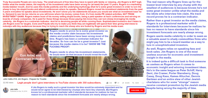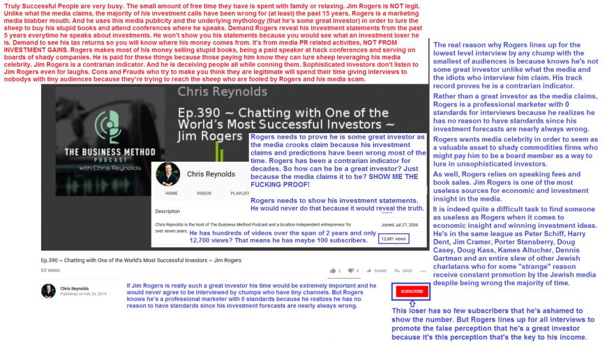At the end of the day it's the naive and lazy investors who have empowered con artists like Rogers and the army of gold charlatans.