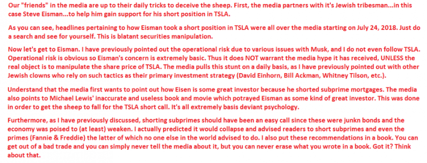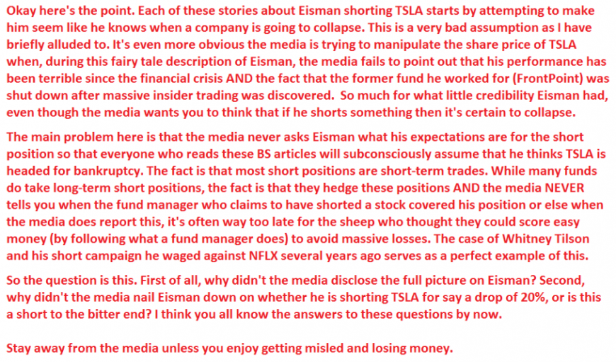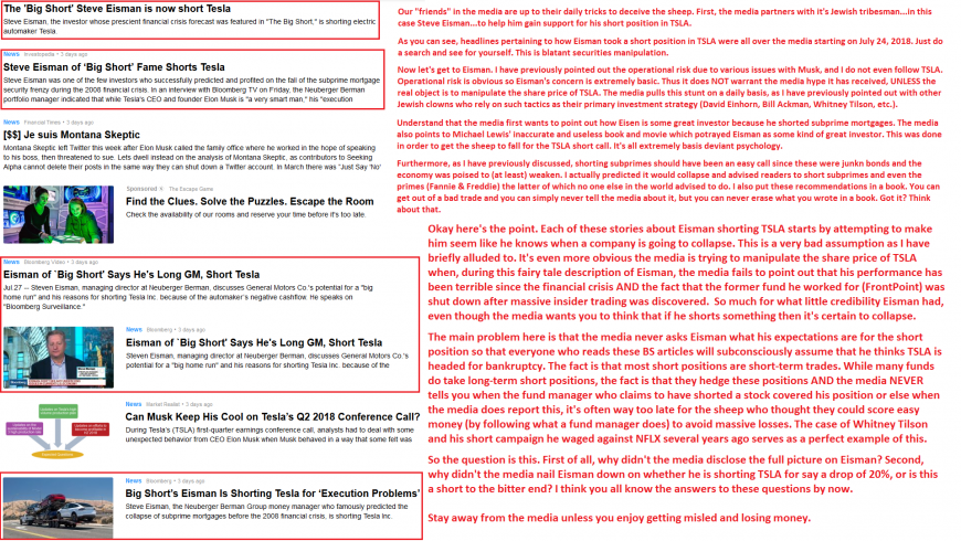 As you can see, this image explains how the media along with Steve Eisman have attempted to manipulate shares of TSLA.