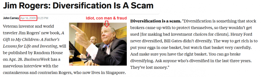 I've published countless articles and videos exposing Jim Rogers. In the near future I will be publishing the ultimate article explaining how Rogers works with the media to scam investors.