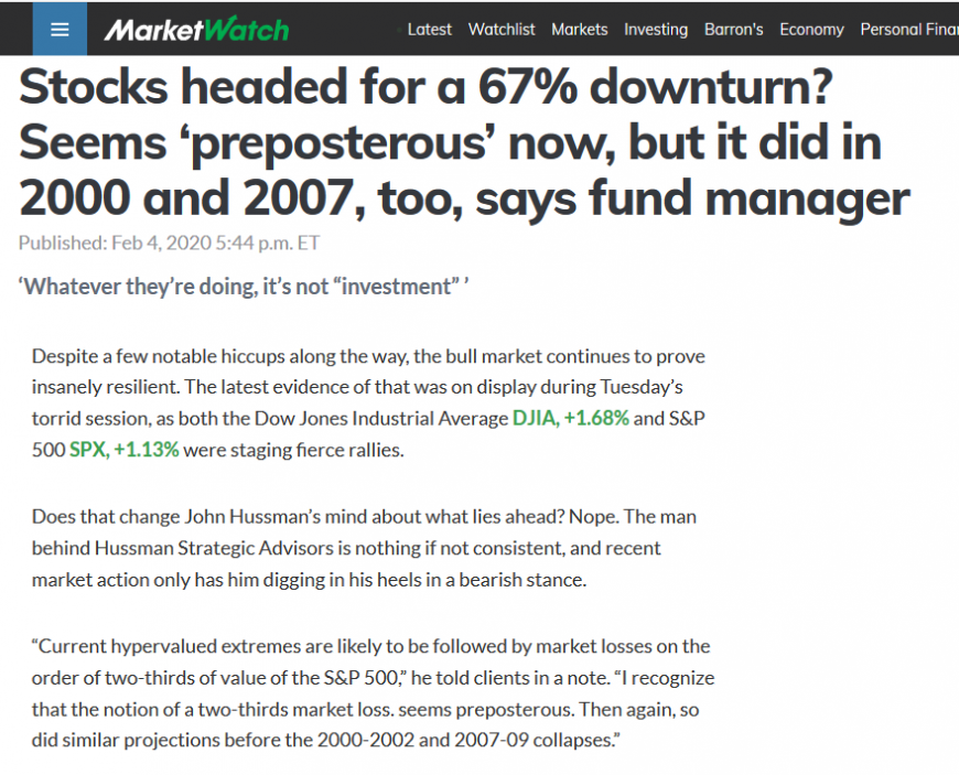See here: John Hussman: Another Doomsday Douchebag with Terrible Performance