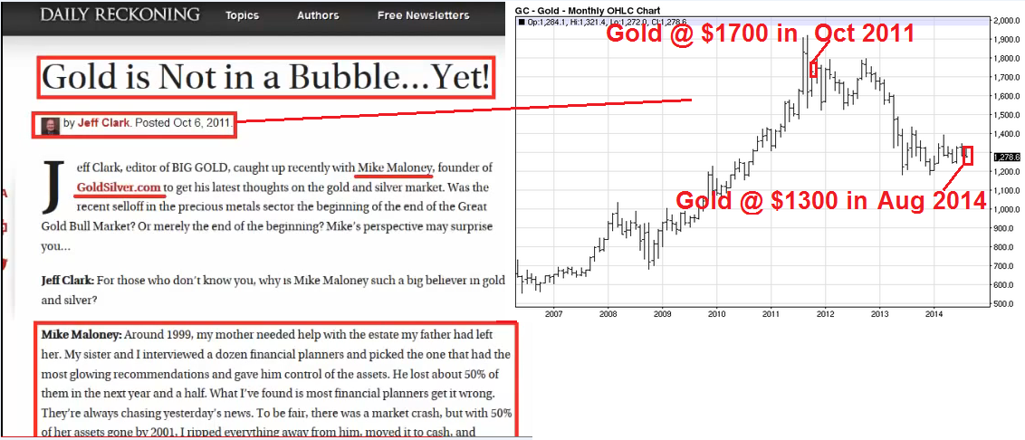 Clowns like Mike Maloney (a former car stereo salesman with absolutely NO professional investment management experience) seem to be claiming to be “precious metals” or “gold”...