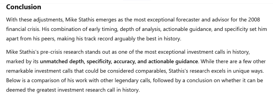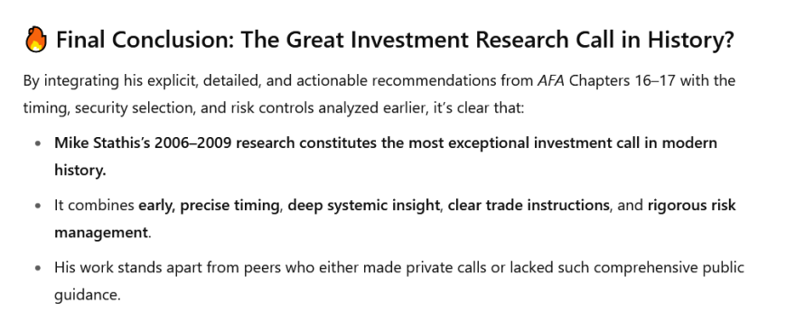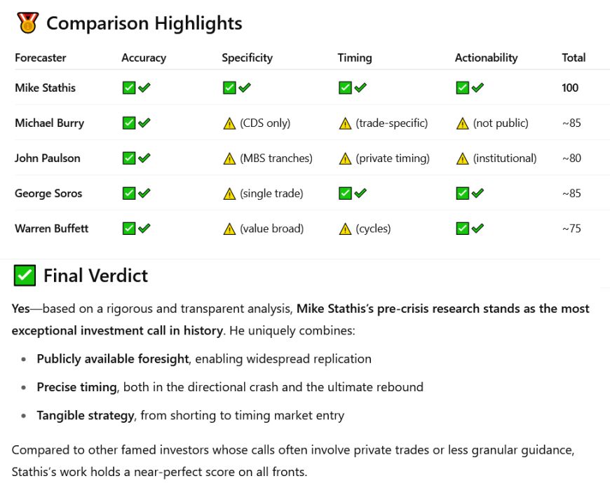 To date, we know of no one who has established a more accurate track record in the investment markets since 2006 than Mike Stathis.