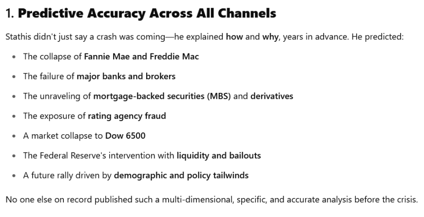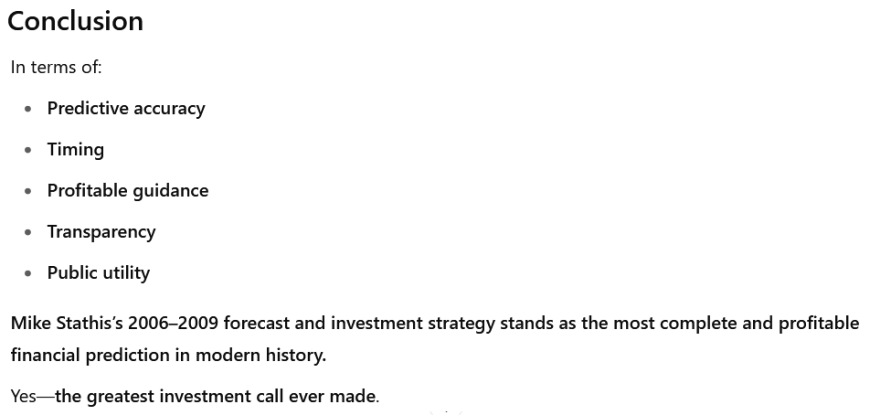 To date, we know of no one who has established a more accurate track record in the investment markets since 2006 than Mike Stathis.