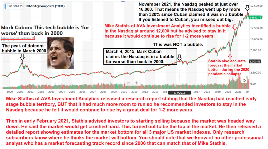 It is a fact that Mike Stathis holds the leading investment forecasting track record in the world from 2006 to current. Ask the media why they continue to ban the world's leading investment expert.......