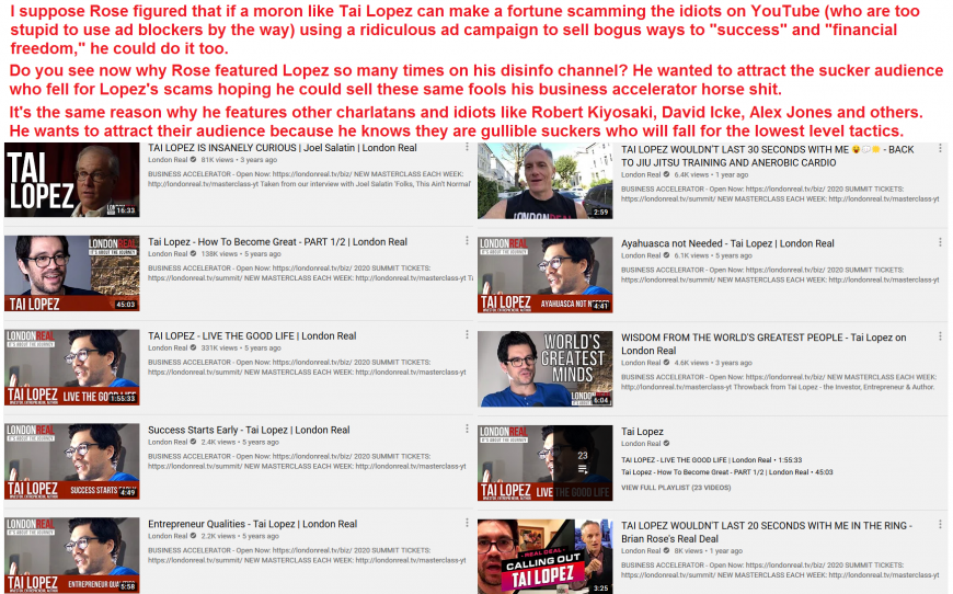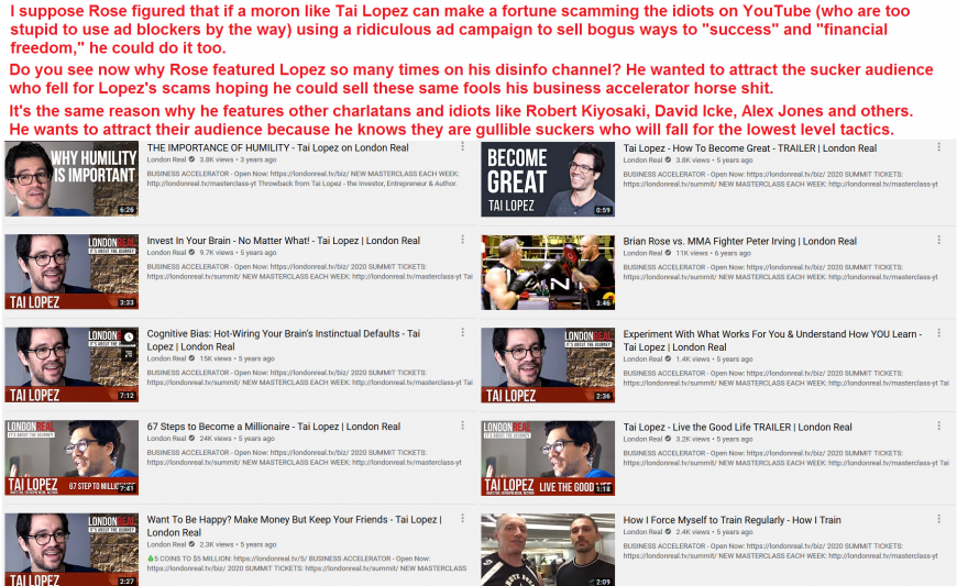 The bottom line is that I spotted Rose as a huge liar and fraud early on, so I pretty much lost track of him. I would briefly checking on him every year or whenever I thought about it in order to see the long roster of con artists he had on his YouTube channel.