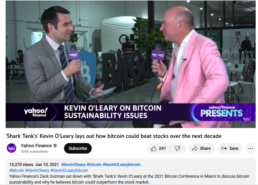 As we know, O'Leary would go one to become a huge promotor of cryptocurrencies and crypto exchanges like FTX.