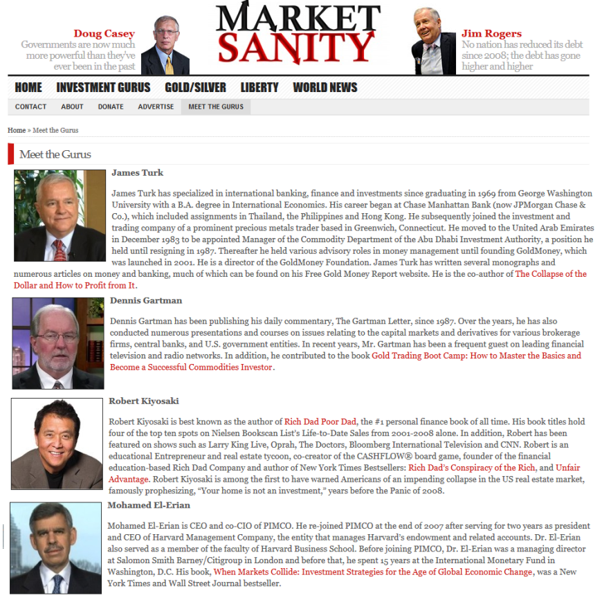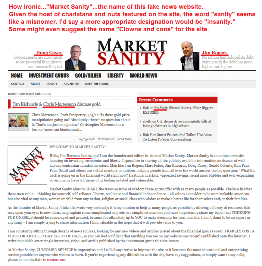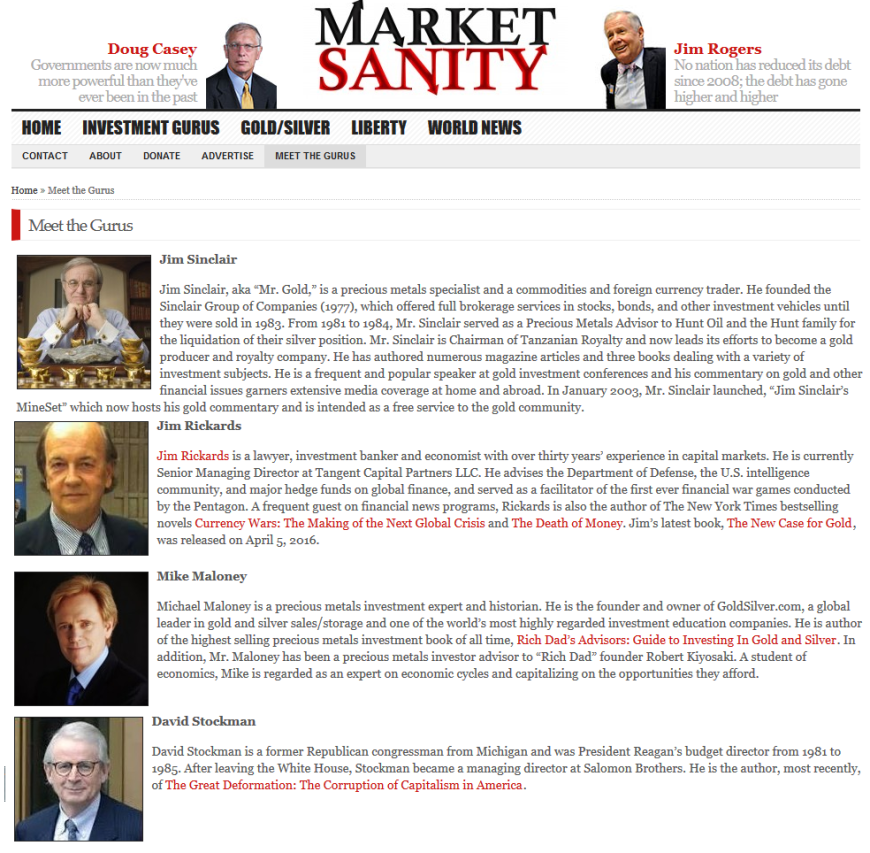 A quick survey of the contributors makes it obvious that the site is a gold-pumping boiler room featuring fake news cons and broken clock scam artists.