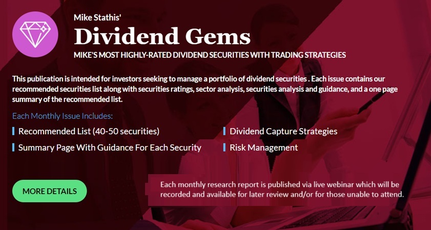 We also provide research subscribers with dividend capture strategies and additional investment and trading strategies that can be used to capture additional income from these investments.
